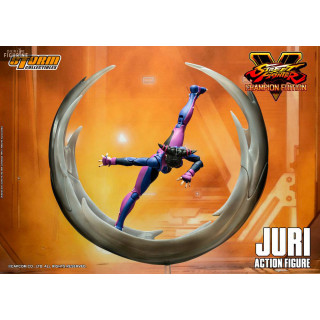 From a very young age, Juri Han practiced taekwondo and became a legitimate practitioner when she was only 15 years old. She survived an attack by Bison on her parents who lost their lives, and ever since that day, she dreams of only one thing: revenge. This is also when she lost her left eye. Here, you can display it in many poses since it has joints, interchangeable parts and effects for the fights.
