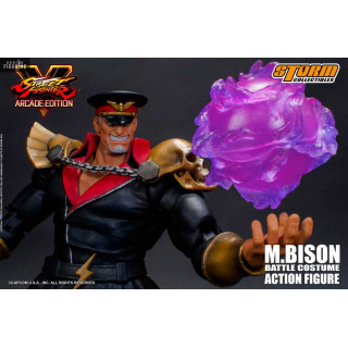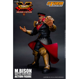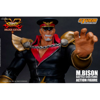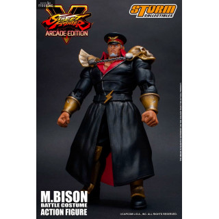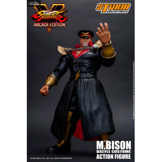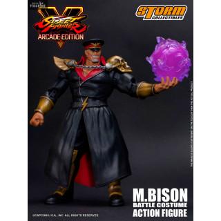 Official M. Bison, Version Battle Costume figure which measures about 18 centimeters high, scale 1/12. The manufacturer is Storm Collectibles.