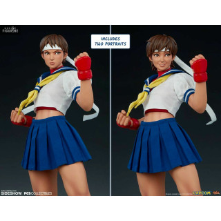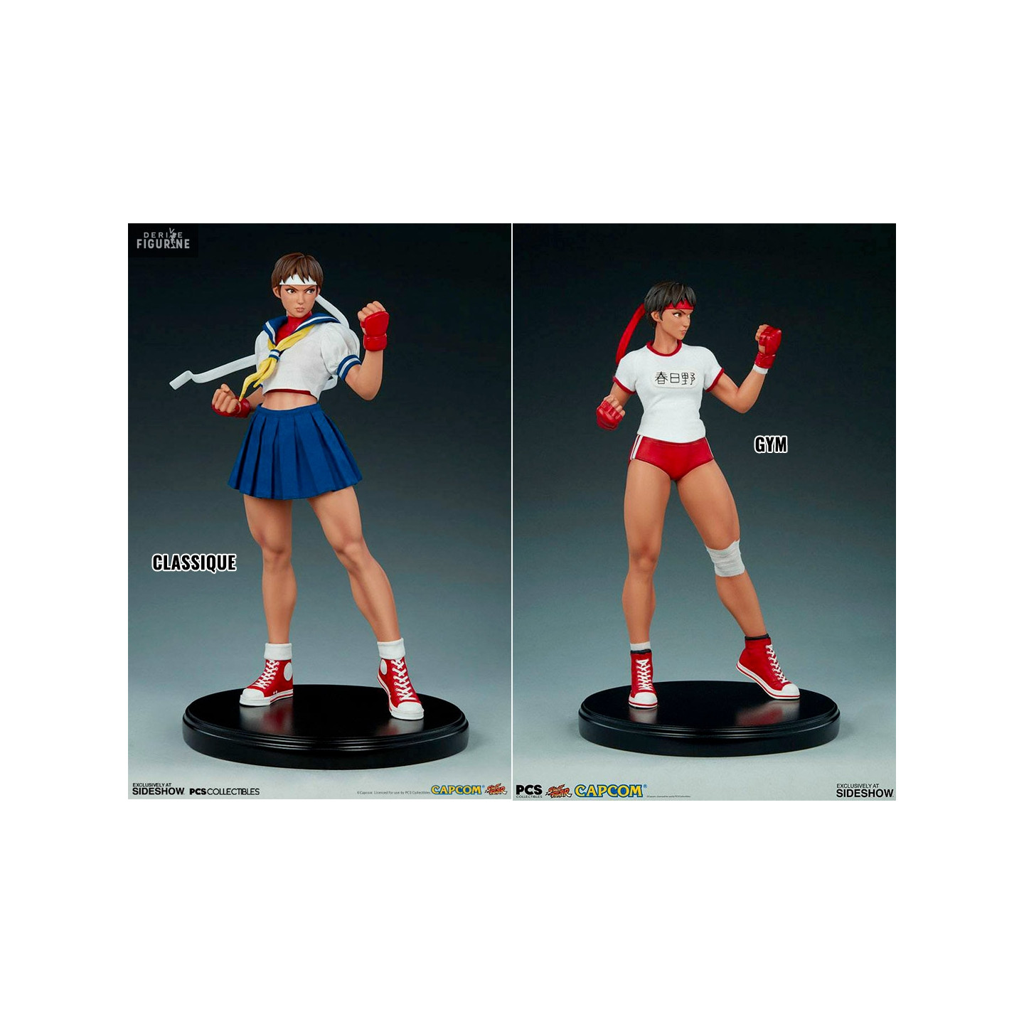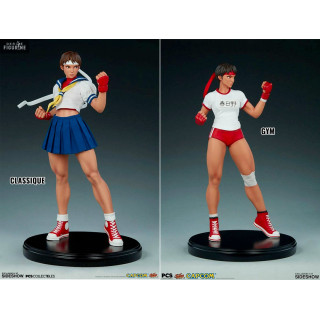 Sakura Kasugano is one of the fighters found in many Street Figther releases. She would like Ryu to be his coach, but in the meantime it's up to you that she decided to trust. You can either choose the Classic version with its blue skirt or the Gym with red shorts and a kimono. The clothes are made of cloth and the statuette is finished and painted by hand.
