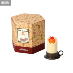 This lamp stays true to his iconic look. Calcifer appears inside a cream candle, his small body of orange and red flames melting softly along the edges. His round eyes and slightly worried expression are faithfully represented. Set on a dark vintage style candle holder, the piece is compact and easy to hold.