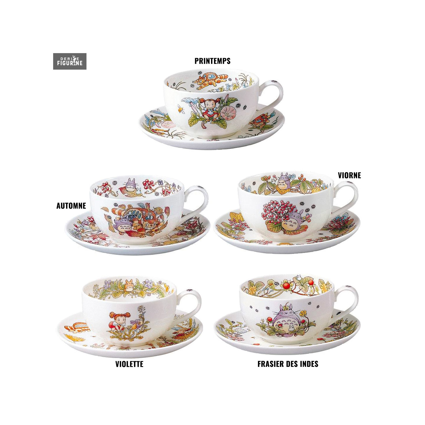 Official mug from My Neighbor Totoro with a choice of five versions (Spring, Autumn, Viburnum, Violet or Indian strawberry) in bone porcelain with a capacity of 32.5 cl. The manufacturer is Benelic.