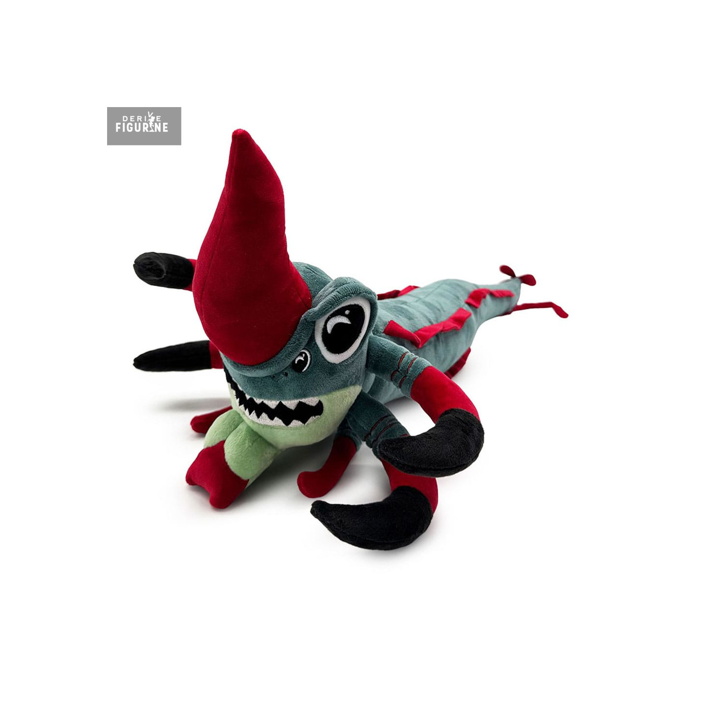 The plush keeps the signature features: long segmented tail, large claws, a prominent red frontal horn, and a mouth full of sharp embroidered teeth. It’s all there — stylized, compact, but unmistakably Reaper.