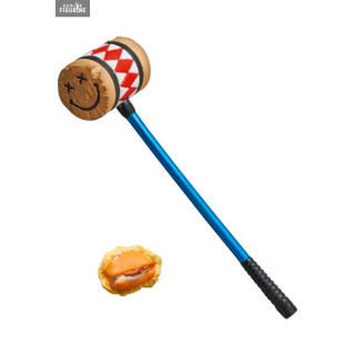 Harley Quinn is a woman who loves life to the fullest and here, her outfit is very festive. She has a transparent jacket with colored fringes on the sleeves. On top of that, she took her hammer and something to nibble on if she feels hungry, as well as an interchangeable face. All of this will allow you to display her however you want.