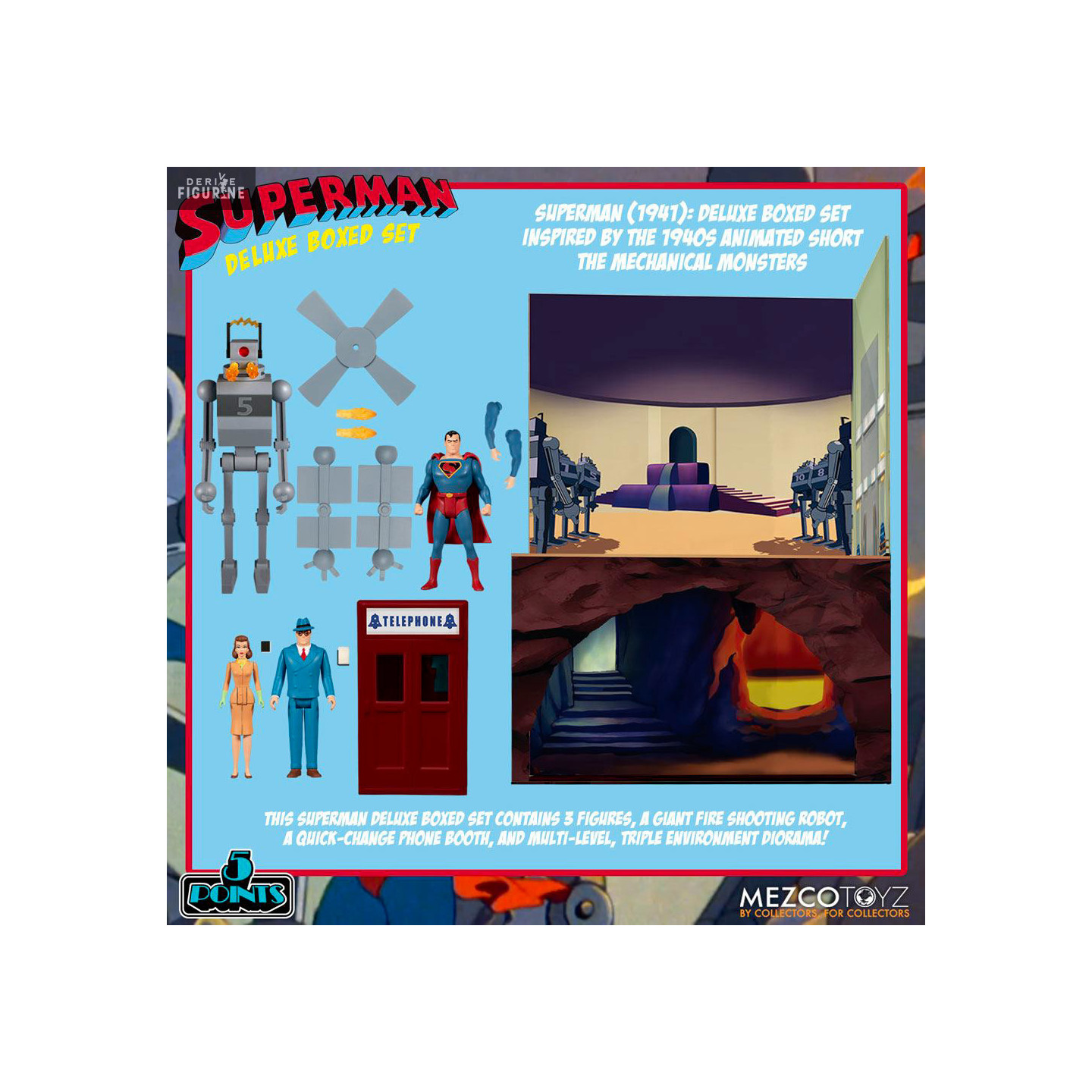If you loved Superman The Mechanical Monsters at the time, you will be happy to be able to rediscover this universe with this pack of figures. It not only contains Superman with his superhero costume, but also in civilian clothes in Clark Kent, with Lois Lane and the Mechanical Monster Number 5 by his side. In addition, there are several sets for you to display them. as you see fit.