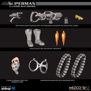 Official figure of Superman which measures approximately 16 centimeters high, scale 1/12. It is from the One:12 collection. The manufacturer is Mezco Toys.