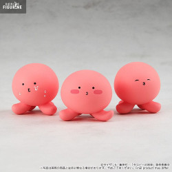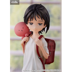 The figure stays true to his understated design: a loose white shirt, light blue shorts, small sneakers, and a vivid red backpack. Takopi rests on his shoulder, round and pink with a simple expression. Shizuka’s calm, slightly weary look and relaxed posture capture his gentle, melancholic presence.