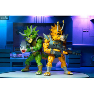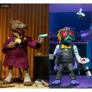 Official figures of your choice between Triceraton Infantryman & Roadkill Rodney, Splinter & Baxter, Rat King & Vernon or Captain Zarax & Zork which measure about between 18 centimeters high. The manufacturer is NECA.