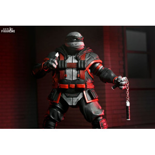 This 18-centimeter articulated figure, produced by NECA, meticulously captures this imposing and somber version of Michelangelo. It comes with several accessories, including an alternate head, interchangeable hands, and his signature metal-chained nunchaku. His reinforced armor, accented with red highlights, enhances his intimidating presence. A must-have collectible for fans of Teenage Mutant Ninja Turtles and the darker narratives of the franchise.