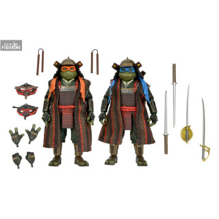 In the iconic Teenage Mutant Ninja Turtles universe, Michelangelo and Leonardo are two pillars of the mutant vigilante group. Leonardo, the disciplined and strategic leader, wields his katanas with deadly precision, embodying the spirit of the bushido. Michelangelo, on the other hand, is the team's carefree soul, always ready to lighten the mood with his quirky humor, yet equally formidable with his nunchaku. This legendary duo is presented here in a samurai armor version, inspired by the "Teenage Mutant Ninja Turtles III" movie, where the turtles travel back in time to feudal Japan.
