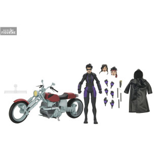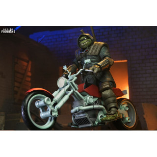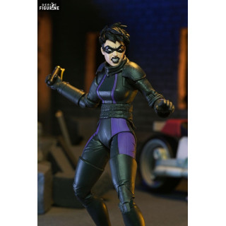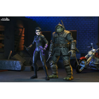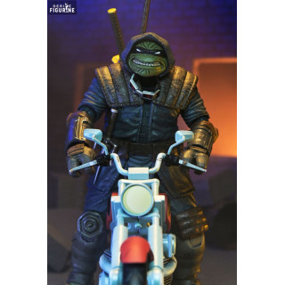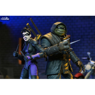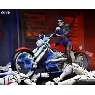This 18-centimeter articulated figure, produced by NECA, offers an ultra-detailed recreation of Casey Marie, complete with her motorcycle, an essential tool for navigating the ruined streets. Her sleek black and purple outfit exudes a modern and tactical style, and she comes equipped with multiple interchangeable heads, a fabric cloak, and signature weapons, including nunchaku and a combat bat. Faithfully designed to fit into the The Last Ronin universe, this figure is a must-have for collectors and fans of the TMNT saga.