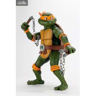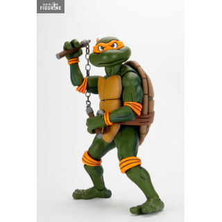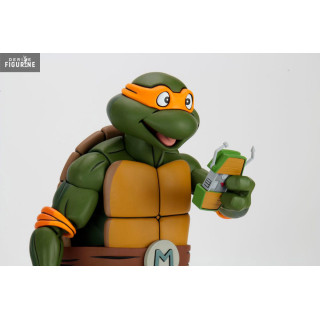 Official figure of Michelangelo which measures approximately 38 centimeters high, scale 1/4. It is from the Giant-Size collection. The manufacturer is NECA.