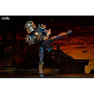 Shredder, the arch-nemesis of the Teenage Mutant Ninja Turtles, strikes in his “Battle Damaged” form: his once-pristine armor is torn, revealing bloody slashes across his dark-blue tunic, and his helmet bears the scars of ferocious combat. You can almost feel his barely contained fury, ready to unleash on Splinter and his wards!