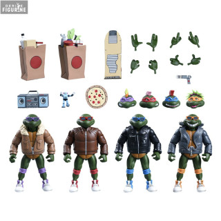 The Ninja Turtles, created by Kevin Eastman and Peter Laird, have always been synonymous with adventure, camaraderie and action. This figure pack captures a unique and bold take on the Turtles, transforming Leonardo, Michelangelo, Donatello and Raphael into stylized urban punks, directly inspired by 80s pop culture trends.