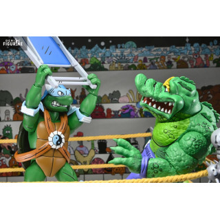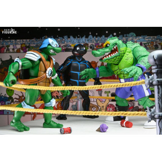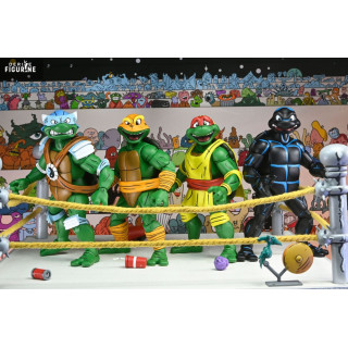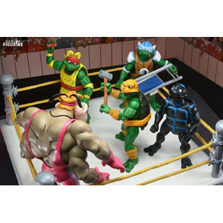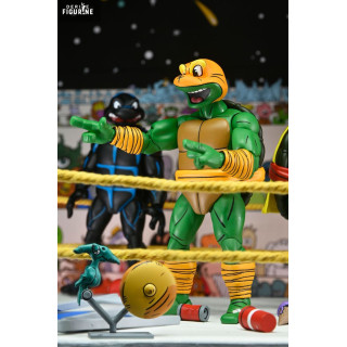 Dive into the unique world of the Teenage Mutant Ninja Turtles Archie Comics with this "Stump Wrestling Turtles" figure pack, celebrating one of the most memorable adventures of our shelled heroes. In this wacky storyline, the Turtles take part in spectacular battles on the intergalactic stage of Stump Wrestling, a competition that mixes humor, action, and colorful characters. These alternative versions of the Turtles showcase their competitive spirit and determination to take on any challenge, no matter how unexpected.