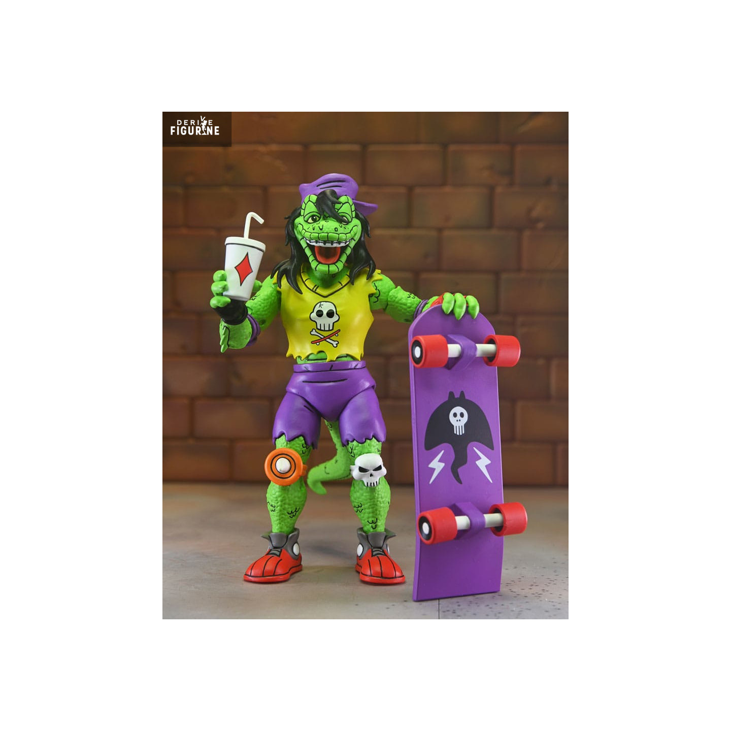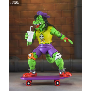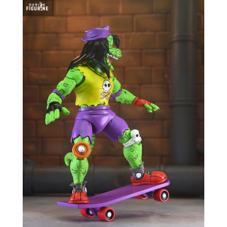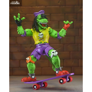 Mondo Gecko, the coolest and most rebellious mutant lizard in the Teenage Mutant Ninja Turtles universe, is ready to roll into your collection with his unmistakable style. This iconic character from the Archie Comics embodies the skate culture of the 80s and 90s. A close friend of the Ninja Turtles, Mondo Gecko is known for his laid-back attitude, unwavering loyalty, and love for action. Whether on his skateboard or shredding with his guitar, he brings a unique energy and a touch of rock’n’roll to the Turtles’ world.