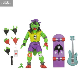 Crafted by NECA, this 18 cm figure is a spectacular tribute to Mondo Gecko. With multiple points of articulation, it allows for recreating his most dynamic and iconic poses. The figure comes with a wide array of accessories, including a customized skateboard, a guitar, interchangeable hands, a microphone, and even a mini figurine of himself. Every detail, from the vibrant colors to his expressive face, has been meticulously designed to reflect his energy and charm. This piece is a must-have for any collector or fan of the Teenage Mutant Ninja Turtles and the retro Archie Comics universe.