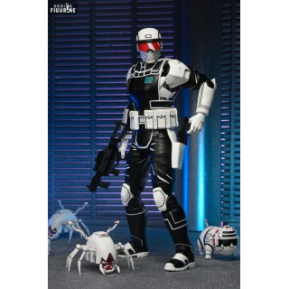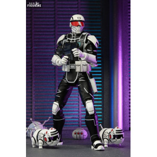 This articulated figure of Synja Commando, standing approximately 18 cm tall, is a must-have for fans of the series. Crafted by NECA, it features exceptional detail and faithfulness to the original work. The character's black armor, contrasted by white patterns, is meticulously reproduced, as are the technological details of its equipment. The figure includes several accessories, such as interchangeable heads for Synja, additional hands for varied poses, and two articulated Mousers ready for action. The matte finish on the armor and carefully painted details pay tribute to the unique graphic style of "The Last Ronin."