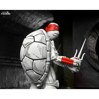 Dive into the original Teenage Mutant Ninja Turtles universe with this figurine pack showcasing the Black and White First Turtles, a faithful replica of the characters as they were first envisioned in the Mirage Studios comics. Before they became the colorful heroes we know today, the Ninja Turtles were depicted in a raw black-and-white style, perfectly capturing the dark and gritty atmosphere of the series’ early days. These figurines are a perfect tribute to the initial essence of this iconic franchise.