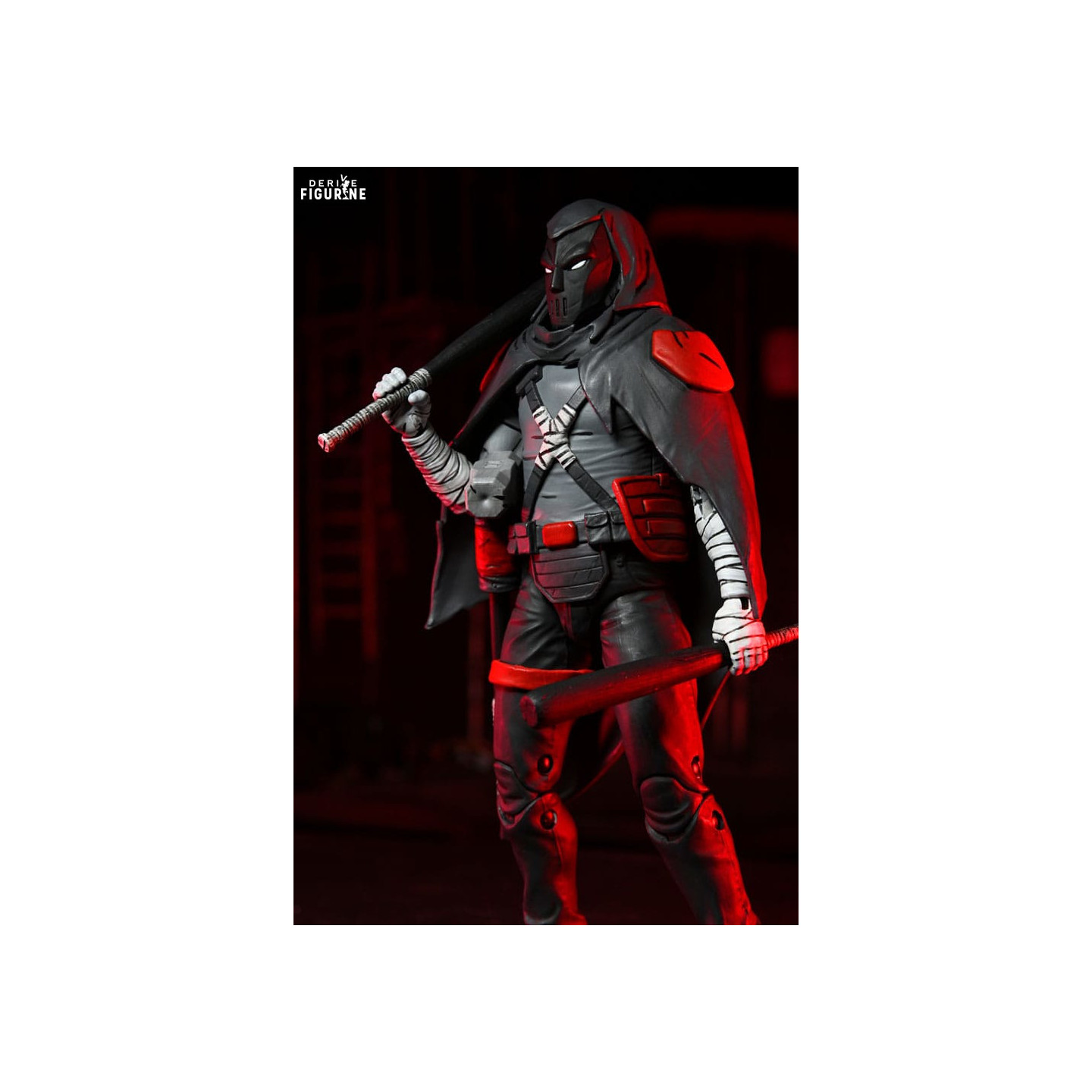This official Casey Nightwatcher action figure stands approximately 18 centimeters tall and includes a wide range of accessories for customization and dynamic display: two interchangeable heads (masked or unmasked), three uniquely styled bats, multiple sets of alternate hands, and a removable hood. The level of sculpting and paint detail is a hallmark of NECA’s renowned craftsmanship, bringing this comic book character vividly to life.