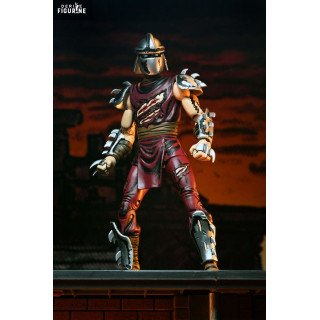 Official figure of Shredder, Battle Damaged which measures approximately 18 centimeters high. The manufacturer is NECA.