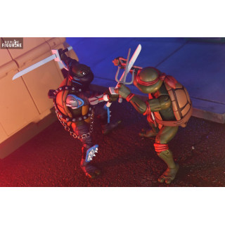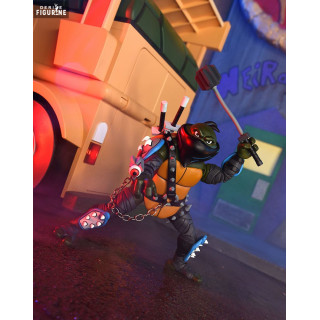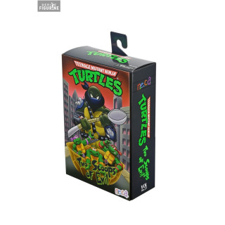 This Ultimate figure by NECA nails the cartoon-inspired look: black bandana, studded armor, wicked grin, and all the accessories you’d expect from a villain with style. The set includes extra heads, hands, weapons, and a retro-style display backdrop. And don’t miss the ice cream-themed packaging with mini turtles in a sundae — it’s as absurd as it is brilliant.
