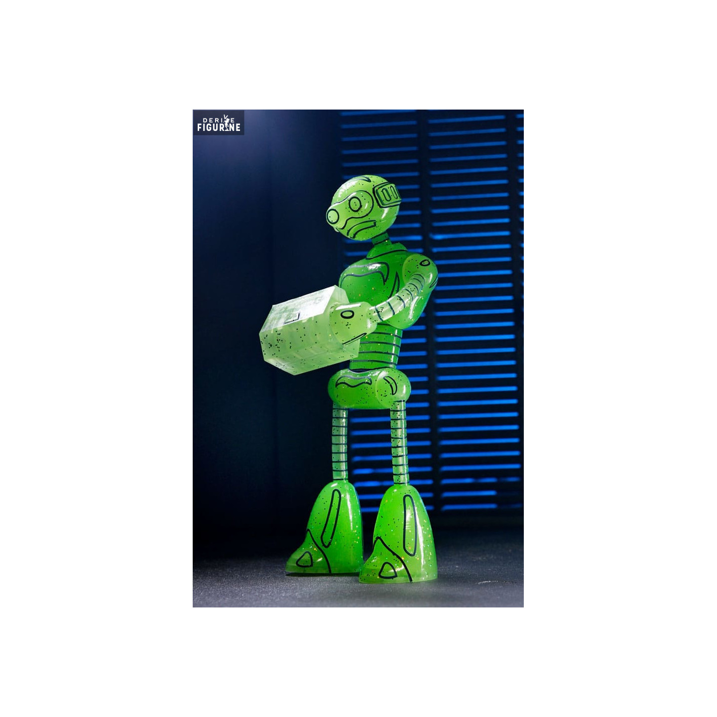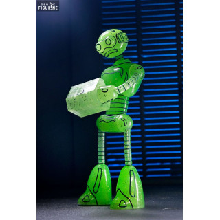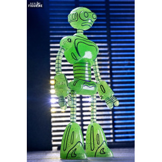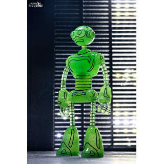 Step into the Teenage Mutant Ninja Turtles universe with this official Transmat Fugitoid, GITD figurine, a glowing version of the iconic robot from the Mirage Comics. Once known as Professor Honeycutt, Fugitoid was a brilliant scientist before an accident transferred his mind into a robotic body. Now pursued by intergalactic organizations eager to exploit his knowledge, he embarks on a thrilling adventure alongside the Teenage Mutant Ninja Turtles.