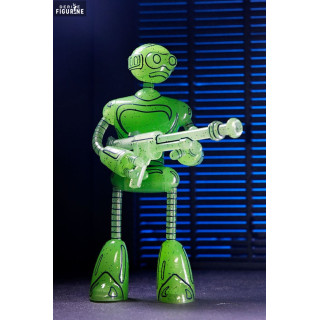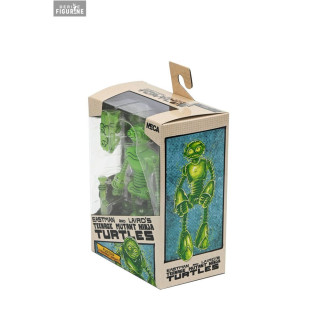 This 18 cm PVC figurine, produced by NECA, features a Glow In The Dark (GITD) version of Fugitoid, giving him a striking translucent green appearance that glows in the dark. Staying true to his Mirage Comics design, the figure comes with multiple interchangeable accessories, including translucent futuristic weapons, alternate hands, and additional tech components. A must-have for collectors and fans of the classic Teenage Mutant Ninja Turtles series!