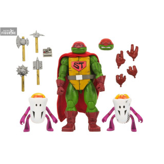 This 18 cm PVC figurine, crafted by NECA, stays true to the Mirage Comics style with an impressive level of detail. The set includes multiple interchangeable accessories, such as medieval weapons, alternative hands, and even two small alien companions, adding an extra layer of uniqueness to this figure. With meticulous craftsmanship and a classic comic-inspired design, this figure is a must-have for collectors and fans of alternate takes on the Teenage Mutant Ninja Turtles.