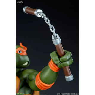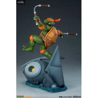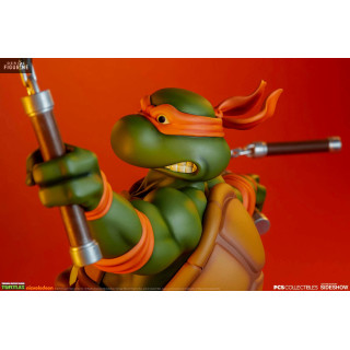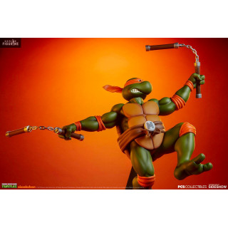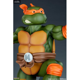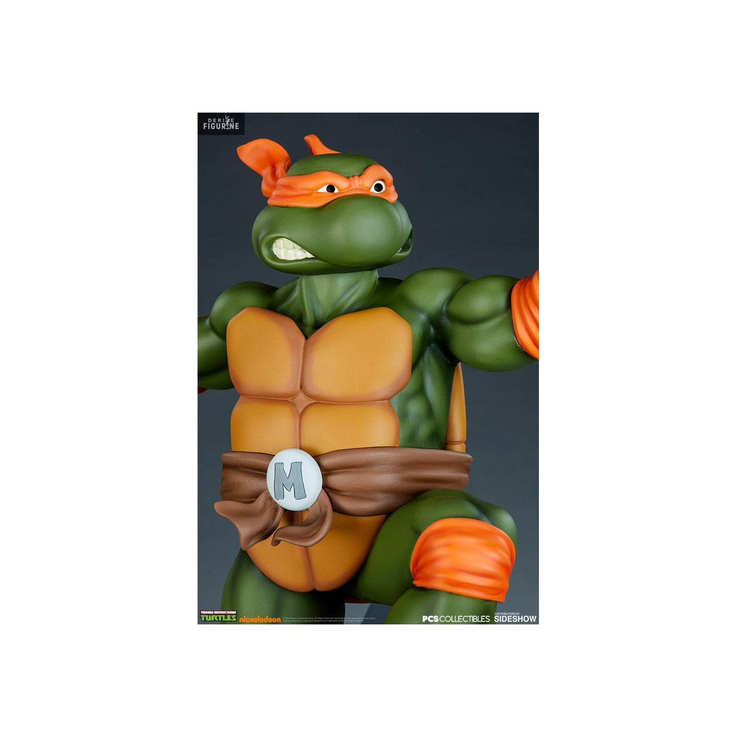 Official Michelangelo figure in resin which measure about 63x53x43 centimeters to scale 1/4. The manufacturer is Pop Culture Shock Collectibles Inc.