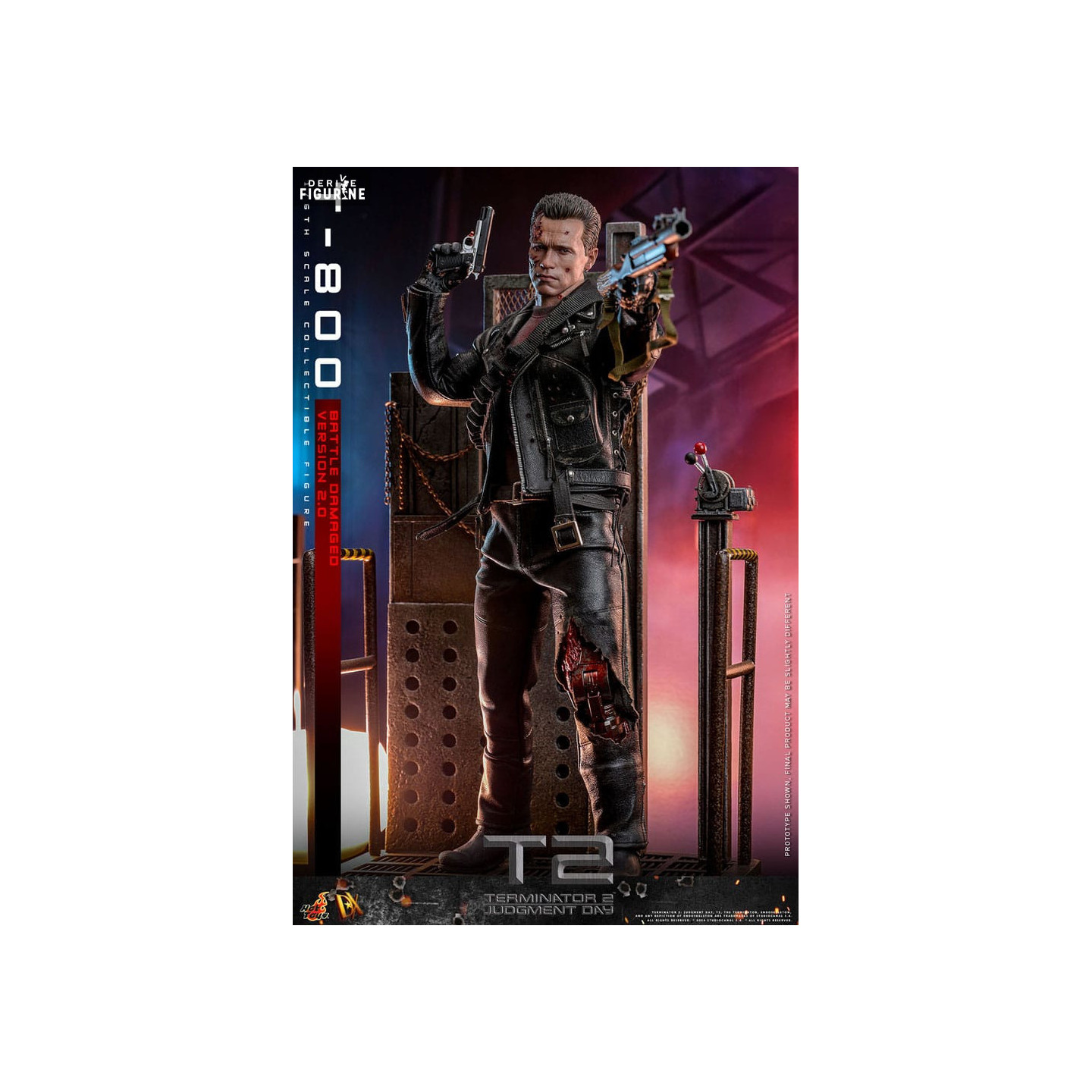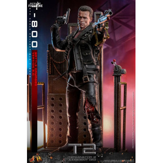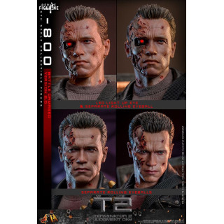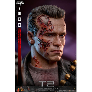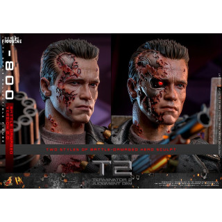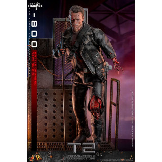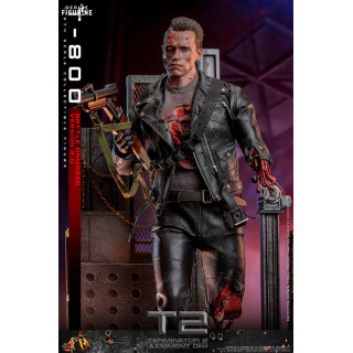 Dive into the iconic world of Terminator 2: Judgment Day with this official T-800 Battle Damaged 2.0 figure, brought to you by Hot Toys in the Movie Masterpiece collection. This incredibly realistic replica of the T-800, portrayed by Arnold Schwarzenegger, captures the full brutality and determination of the cyborg after his intense battles against the enemy forces.