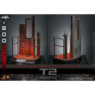 Standing approximately 32 cm tall and crafted at a 1/6 scale, this figure offers astounding detail. The T-800’s face is heavily damaged, revealing mechanical components beneath the human skin, with a LED-lit eye that adds to the figure's menacing presence. Dressed in genuine leather clothing and equipped with interchangeable accessories, the figure’s realism is further enhanced. Included are various damaged head sculpts, an interchangeable battle-damaged left leg, and iconic weapons from the movie such as the shotgun and heavy machine gun.