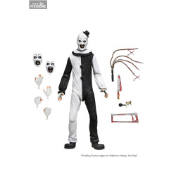 Official figure of Art the Clown which measures approximately 45 centimeters high, scale 1/4. The manufacturer is NECA.