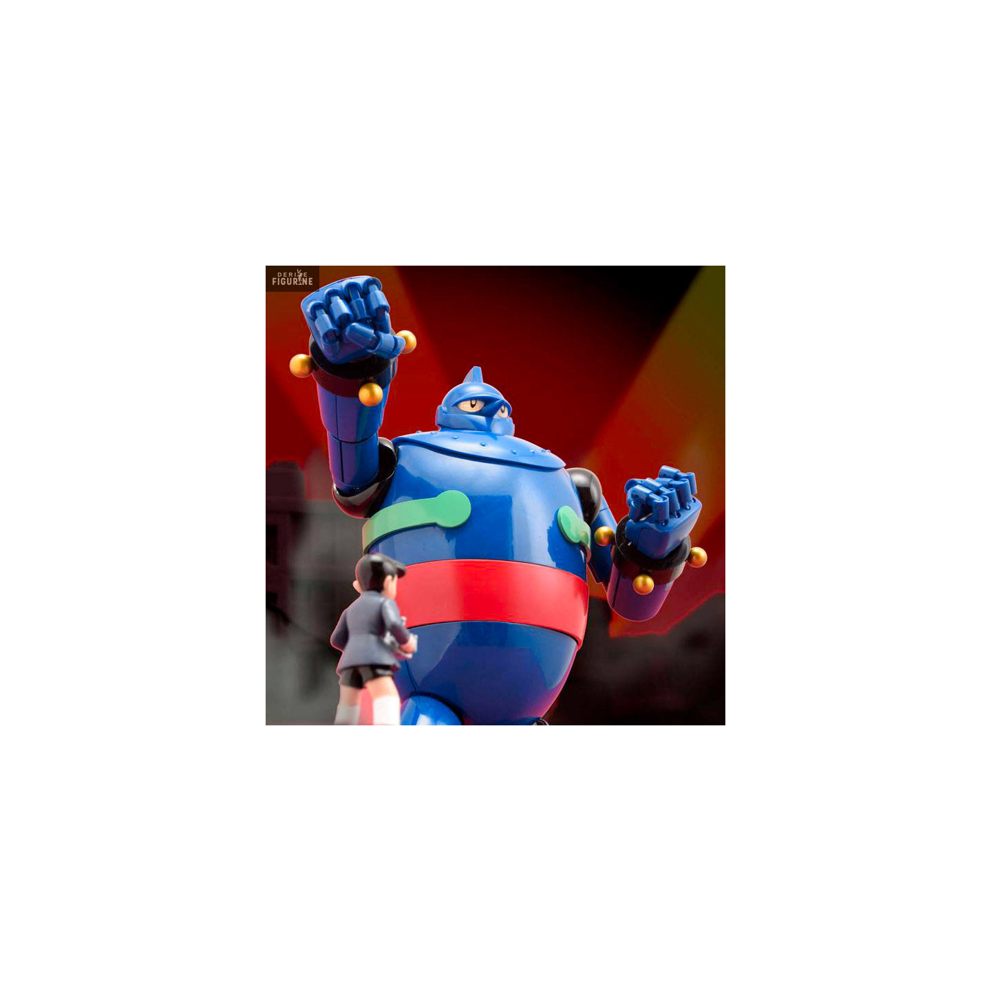 The Tetsujin 28 is a robot created by Professor Kaneda during WWII. It is besides the son of this one, Shotaro who will take up the torch and use the Tetsujin 28 to fight against evil. So you have a very nice representation of this robot and you can even see how it is done inside. It also has parts that light up with LEDs (batteries not included) and a small Shotaro figure.