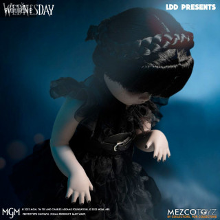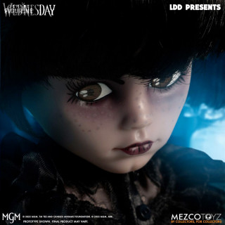 Official figure of Wednesday which measures approximately 25 centimeters high. It is from the Living Dead Dolls collection. The manufacturer is Mezco Toys.