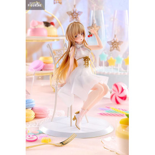 Crafted from high-quality PVC, this 20 cm, 1/7-scale piece plays on subtle contrasts between the skirt’s light transparency and the bodice’s satin opacity. The wealth of details — fabric folds, golden corset highlights, and chair embellishments — showcases precise craftsmanship. Mounted on its circular base, it displays elegantly on any shelf or desk.