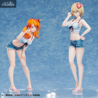 Explore the captivating world of Hououji Akane through this exquisite figurine that captures the duality between her role as a part-timer at Café Familia and her passionate life as the singer and guitarist of the band Mussy Mustache Girls.