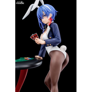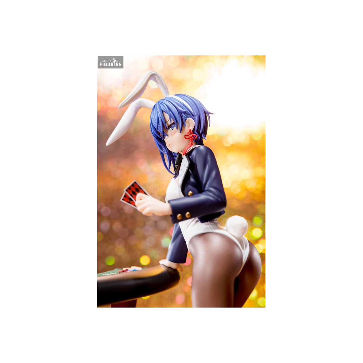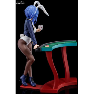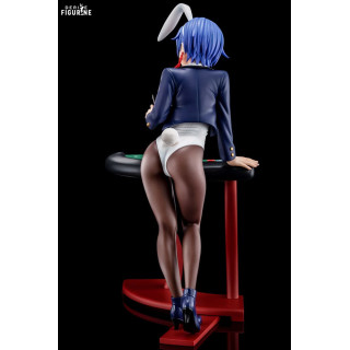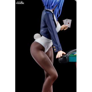 This Sakuya figurine in "blue bunny" immediately catches the eye with its bold and elegant design. Wearing a seductive blue bunny costume, Sakuya is depicted in a dynamic pose, holding playing cards near a casino table. Her outfit highlights her graceful curves, while the neat details of her costume, from the bunny ears to the shiny blue boots, add a touch of sophistication to the ensemble.