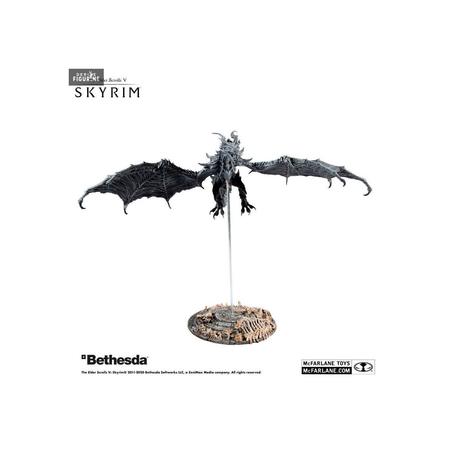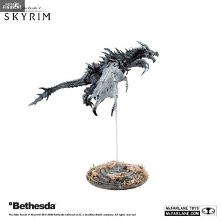 Official figure of Alduin measuring approximately 23 x 8 centimeters (wingspan 19 cm). The manufacturer is McFarlane Toys.