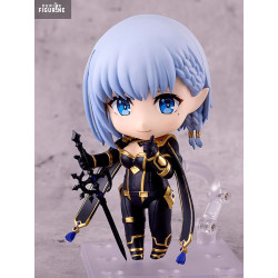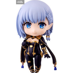 This Nendoroid captures Beta’s essence in an adorable chibi format. She wears a sleek black bodysuit with intricate gold detailing that enhances her stylized form. Her light blue bob-cut hair, braided at the side, frames her large, expressive blue eyes. Multiple accessories and facial expressions allow for playful customization: glasses, an open book, a stylized black sword, or a hand posed on her cheek with a mischievous smile.