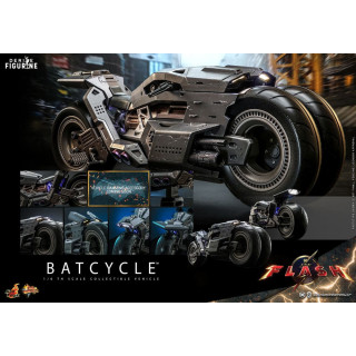 Official figure of Batcycle which measures approximately 20 x 16 x 56 centimeters, scale 1/6. It is from the Movie Masterpiece collection. The manufacturer is Hot Toys.