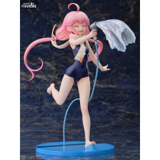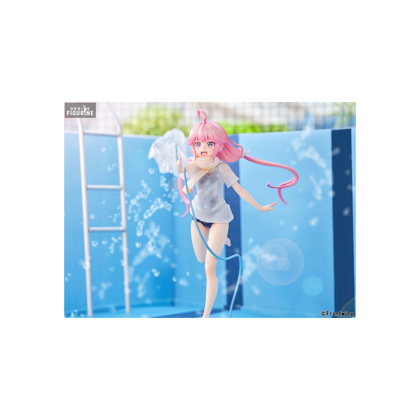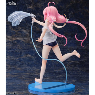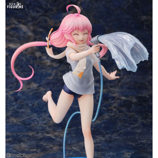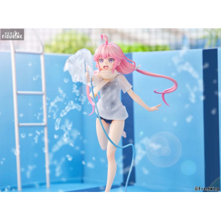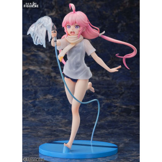 This figure captures Murasaki in a refreshing summer version, showcasing a more casual and carefree side of the character. Posed dynamically, she is dressed in a navy-blue swimsuit under a translucent wet T-shirt, adding a stunningly realistic touch. Her joyful expression and flowing pink hair enhance the sense of motion. Holding a water hose spraying water, the scene evokes a moment of relaxation and playfulness, far removed from the heavy responsibilities she usually shoulders.