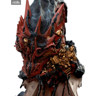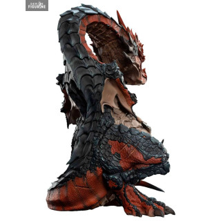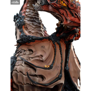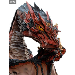 Smaug is a dragon living under Grey Mountain, where he stolen many treasures from the dwarves of Erebor, including the precious Arkenstone. You can therefore admire him with this beautiful statuette which is rich in details, as well with the treasure he has in his hands, the texture of his scales or the scars that cover his body.