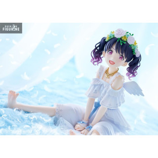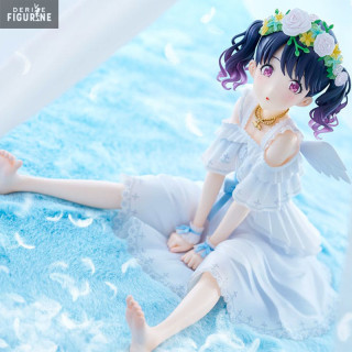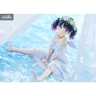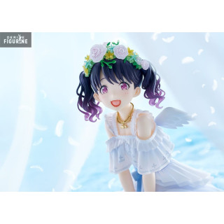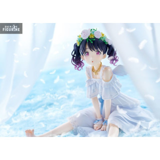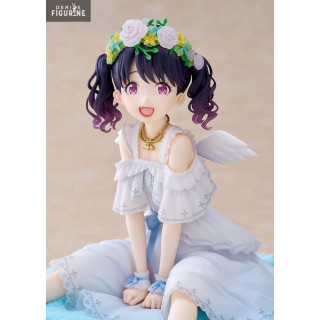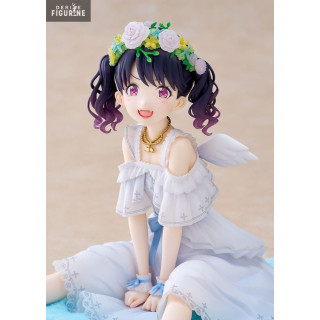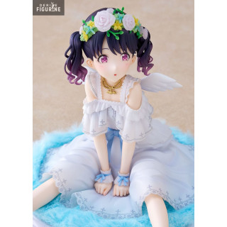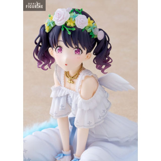 Immerse yourself in the enchanting world of "The Idolmaster Shiny Colors" with the Koito Fukumaru Figurine from the Sunny Day Cafe collection by Wave Corporation. This captivating figurine features Koito Fukumaru in a seated pose, dressed in a white outfit adorned with small angel wings and a delicate flower crown.