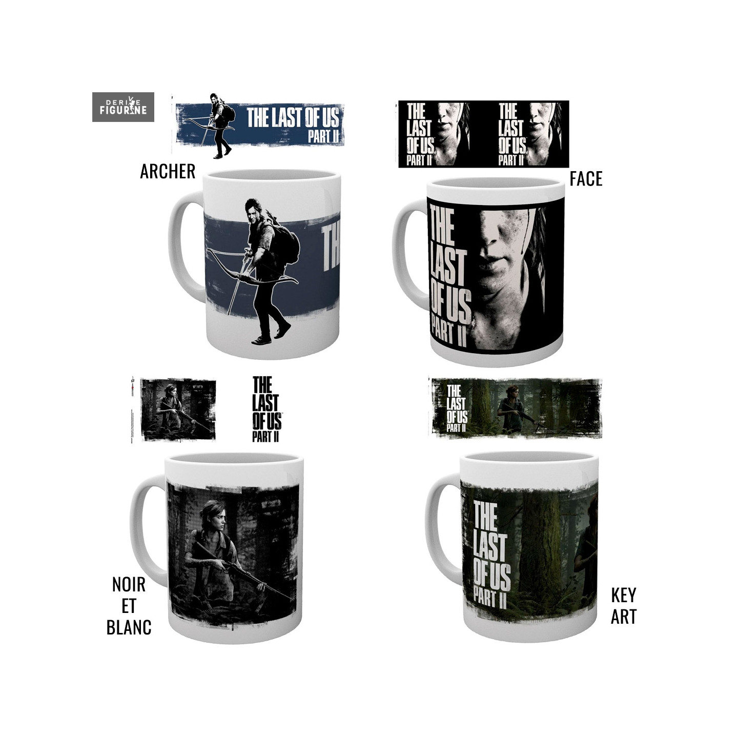 If you are impatiently waiting to be able to get your hands on the new opus of The Last of Us, here is something to make you wait. You have the choice between four different mugs to know: Key Art where we see Ellie in the forest, Black and White which uses the same visual but in black and white, Archer where she stretches her bow and finally Face with a part of her face.