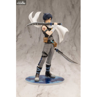 Kotobukiya's Joshua Bright figure presents him in a dynamic pose, swords in hand, ready to face any enemy. The meticulous details of his facial expression, outfit, and weapons are reproduced with great precision, honoring his intense character and combat prowess. The dual swords, sculpted with particular attention to detail, reflect Joshua's dual nature, a man who is both tender and formidable.
