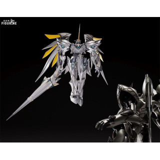 The model features a brilliant silver metallic finish, accented by blue and gold details that add a touch of majesty and mystery to the figure. Its imposing sword, perfectly replicated, can be held in various positions thanks to flexible joints, enhancing the sense of movement and power. Additionally, the kit includes multiple interchangeable parts and accessories, offering extra customization for modeling enthusiasts.