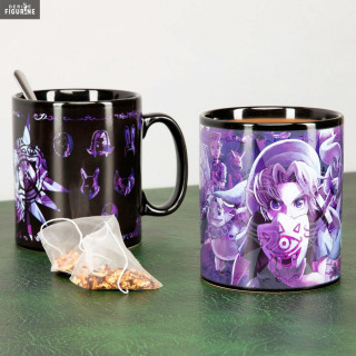 The fans of The Legend of Zelda will be thrilled with these two items. On the one hand you have a glass with the logo of the game and the emblem of Hyrule with a capacity of 50 centilitres and the other a mug with thermal effect in ceramic with a capacity of 90 centilitres. When pouring a hot liquid inside, you will see a beautiful image of Majora's Mask.