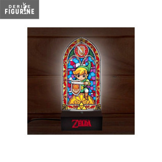 Here is a nice little lamp with an image from Wind Waker. You can see Link on it, his sword and his shield in his hand in a design reminiscent of the stained-glass windows of the churches. To use it, nothing more simple, just clip the PVC plate on the base and plug it in.