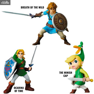 Official figure of Link of your choice between three versions Breath of the Wild (8cm), Ocarina of Time (8cm) ou The Minish Cap (7cm). It is from the Ultra Detail Figure (UDF) collection. The manufacturer is Medicom Toy.