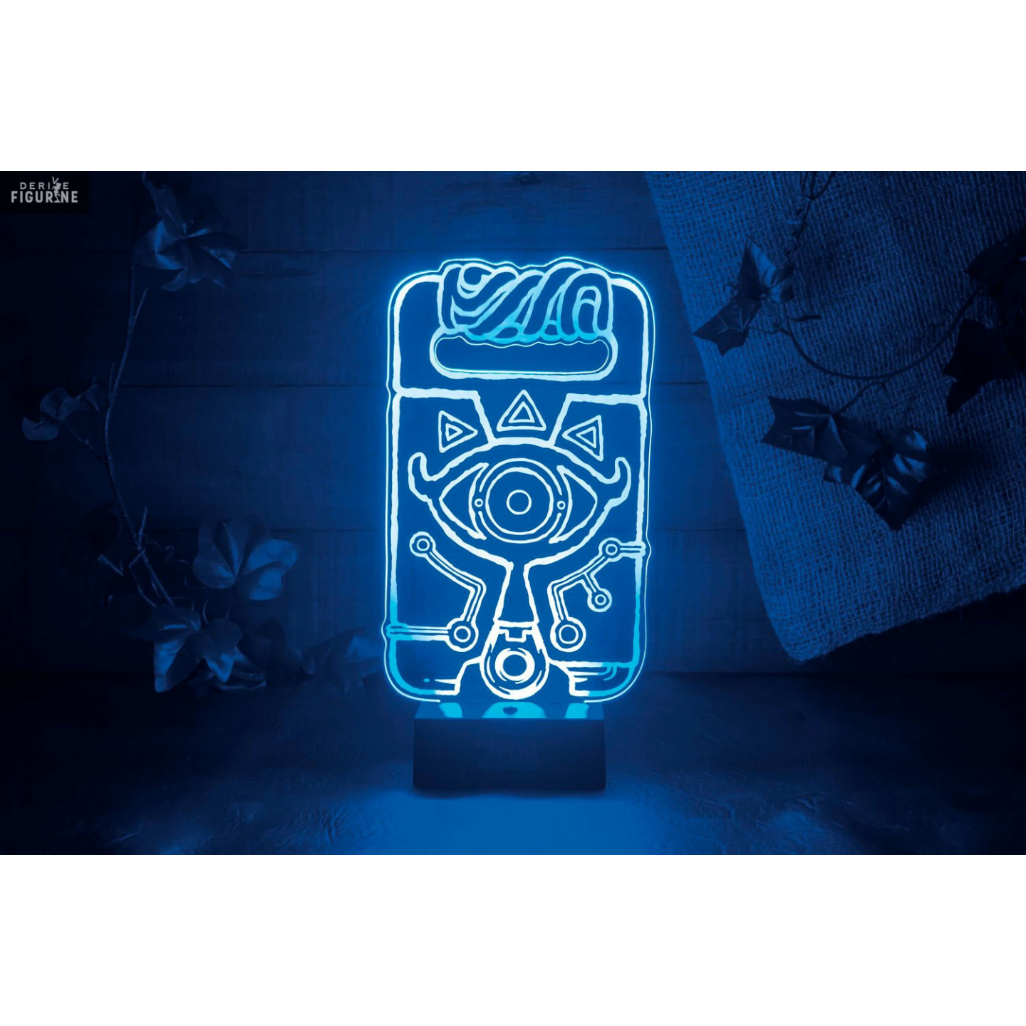 Sheikah Slate official lamp about 25 centimeters high. It works either by USB connection or with three AA batteries (not included). The manufacturer is Paladone.